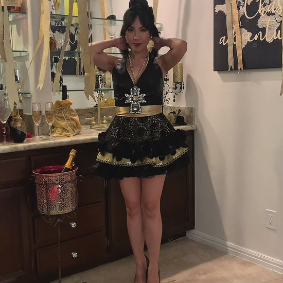 LEATHER AND LACE APRON IS HANDMADE FROM SOFT LEATHER, VENETIAN LACE AND BEADED FRINGE TRIM. TO CREATE A SASSY LOOK WE'VE ADDED A PINK ORGANZA PEPLUM SKIRT AND FINISHED WITH A TULLE TUTU UNDERSKIRT FOR THE FINAL SWEETNESS. THIS APRON IS DESIGNED FOR ENTERTAINING IN A FASHIONABLE EDGE STYLE. EVERY GIRL LOVES PINK AND BLACK.